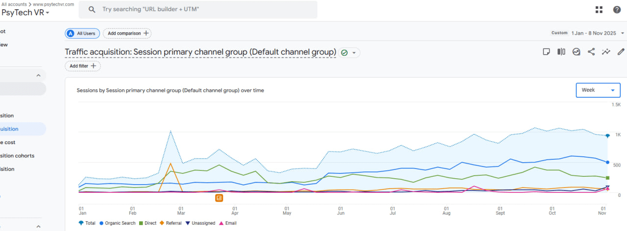 This ongoing multichannel growth project focuses on lead generation, brand awareness, and international expansion for a VR therapy platform used by mental health clinics, hospitals and individual therapists. One of the core objectives is to deliver a stable monthly flow of therapist, clinic, and distributor MQLs across multiple geographies and maintain consistent MoM growth in both organic and paid acquisition. To achieve this, I am leveraging SEO, Google Ads, paid social on LinkedIn, content distribution and seeding on Instagram and Reddit, retargeting and email nurturing flows.